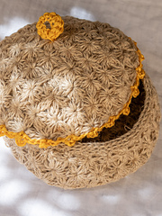 Designed for chunky jute yarn, this basket grows into a functional and beautifully textured piece for your home - complete with a lid and adjustable sizing, so you can adapt it to your own space and needs.