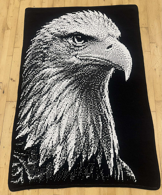 - Instructions and information on measurements, quantity and brand of yarn used, and links to video tutorials on the overlay mosaic crochet technique, in English, German, Dutch and Spanish