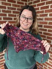 I blocked my bandana fairly aggressively to achieve the desired drape and finished dimensions. The fabric will relax and stretch a lot with wet blocking!