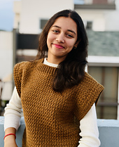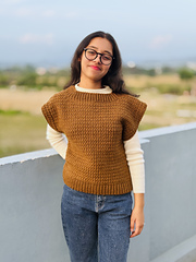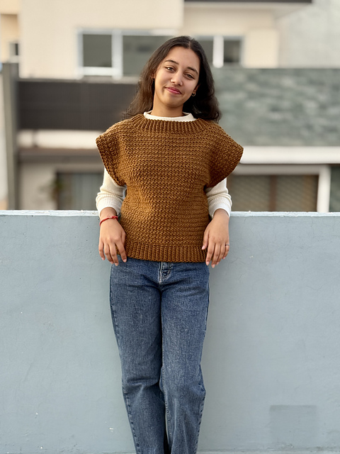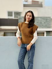 This is a classic easy seamed vest sweater with a slight drop shoulder. Designed in weight 4, aran yarn and single crochet cluster stitches, Nestlynn, as the name suggests, is a cozy and warm vest sweater, perfect for layering in cold weather.