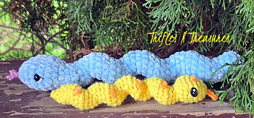 Like their cousins, the Derpy Sneks, these guys can be created using any yarn, they're no-sew, and can be made to any length you like My models measure 13" long in plush yarn, and 8.5" long in worsted, with the same number of rounds