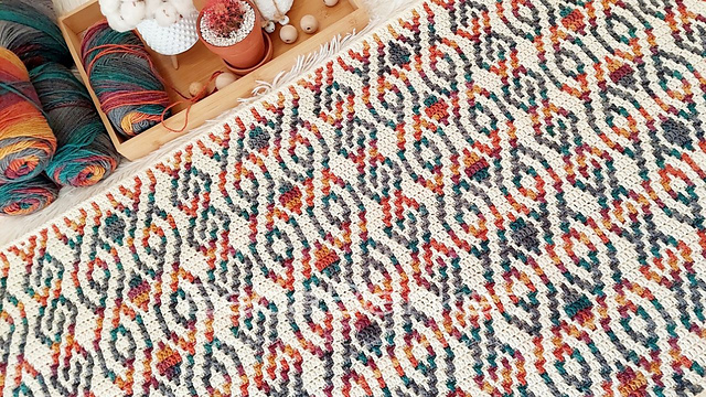 You can use any yarn, colors & appropriate hook size that suits your project and create as large/small a project as you wish by adjusting the number of repeats in width and/or in height.