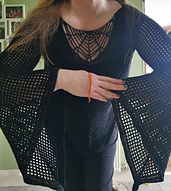 Bell sleeves with mesh stitch