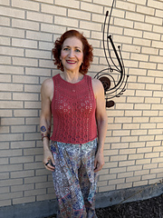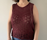 The top starts at the back. It is knitted starting at the back of the neck and working down to the armholes. The stitches are then picked up to knit the front from the top-down. Neckline is shaped while knitting lacework chart to the armholes.