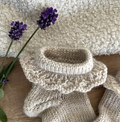 Mynte Socks Junior are worked in the round in stockinette stitch from the cuff to the toe. The heel is shaped with short rows (here: German short rows). Under the cuff the ruffle is knitted.