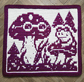 Meet the cheeky little toad, hopped straight out of the forest and onto your sofa! This **cushion cover** pattern is a playful mix of mushrooms, mischief, and ***overlay mosaic crochet***.