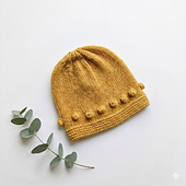 The Hello Sunshine Beanie is knit from the bottom up, starting with the garter stitch band, bobble stitch edging, body, and finally crown decreases. The design works for both girls and boys and is perfect for making matching family sets. You can also add personality to the hat by adding an optional removable pom pom.