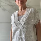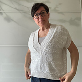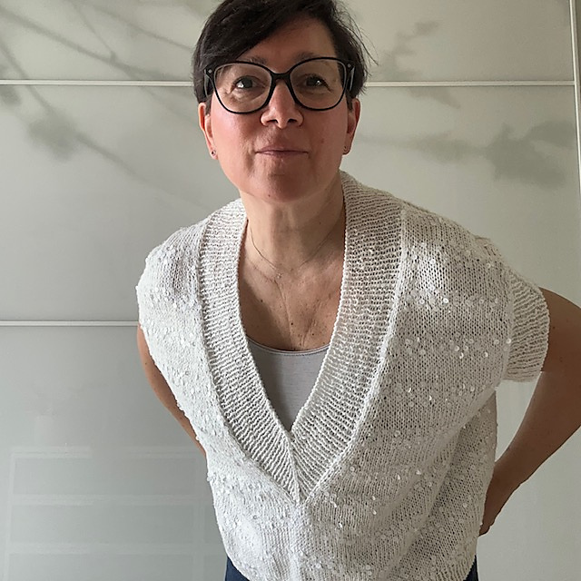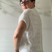 Penelope Tee è una maglia estiva a maniche corte ma nulla vieta di realizzarla con un filato invernale e indossarla sopra ad una camicia.