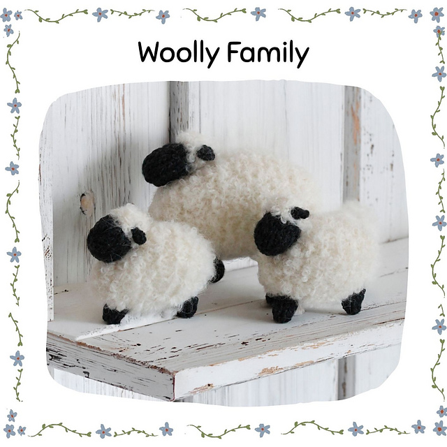 The bodies are worked with bouclé yarn and other components are worked with DK (8-ply) weight yarn. The project calls for small amounts of yarn. Feel free to use your stash, referring to the yarn information given.