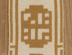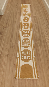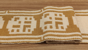 Double knit using 4 Seasons Half n Half 10 ply wool blend yarn in 01 Cream and 11 Mustard. I think I used a little more than 4 balls (2 of each colour). Produces a very thick scarf, probably too warm for mild Australian winters. Probably should have used slightly thinner needles as the scarf is very stretchy and you can see stitches from the reverse side when stretched. Dimensions after blocking were 177 cm (H) x 23 cm (W).