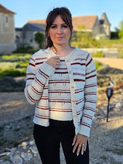 Le twin set Ombeline, composé d’un pull manches courtes et d’un gilet assorti, joue sur l’équilibre entre douceur et caractère. Rayures délicates et dentelle s’entrelacent pour créer un ensemble féminin, léger et intemporel. Pensé pour l’intersaison, il se porte aussi bien ensemble qu’en pièces séparées.