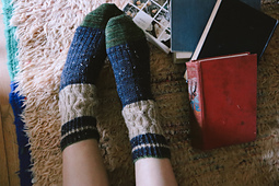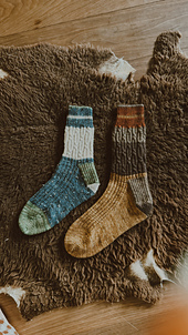 When I think of Kyoto, I imagine retro cafés and old bookstores—these socks are inspired by a glasses-wearing bookseller who quietly drifts into a nostalgic café, as if they’ve always belonged there. These socks reflect that small story through cables reminiscent of books, frames, and classic textures.