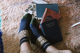 喫茶店にいつもやってくる気になる古本屋のメガネの店員さんの靴下.