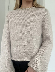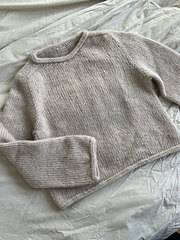 Amber Sweater er en blød og vamset sweater med et tidløst og klassisk udtryk. Sweateren strikkes oppefra og ned, hvor der først laves udtagninger til skulderen, dernæst til ærmet og til sidst til ærmegabet. Sweateren strikkes i glatstrik og afsluttes med i-cord kanter.
