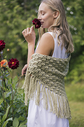The shawl is worked from the bottom corner to top edge and finished with fringes.