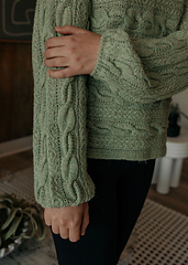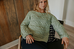 Continuing my fascination with designing garments in different directions, I wanted to pull together elements that exaggerate the look that only a sweater knit sideways can achieve. This pullover is knit from sleeve cuff to sleeve cuff in one piece, then folded and seamed under the sleeves and sides. It accompanies the article, Designing Sideways Sweaters, in the Summer 2026 issue of Cast On.