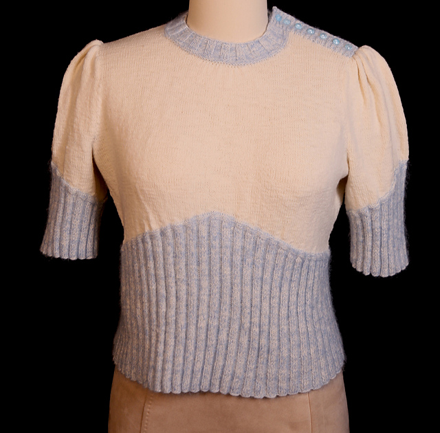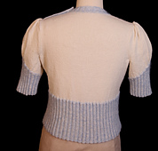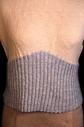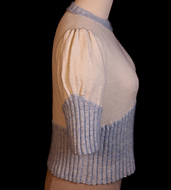 My Helen cardigan is one of my most worn garments; I just love how the fit turned out. So for this pattern to accompany the article on puffed sleeves for the Fashion Framework series, I knew I wanted to take that silhouette and make it into a pullover. I envisioned a high neck, which would require a button placket at one shoulder in order to get the sweater over the head. I also envisioned a fuzzy “sweater girl” vibe for this design. In came Kidsilk Haze, held together with the wool yarn in just the ribbing sections. In addition to adding that wonderful halo, using a different color allowed me to add a pop of color in those ribbing sections as well, without changing the main yarn. I ramped up the puffed sleeves here by adding in short rows, which allows the puffs to rise up a bit. Optional sleeve supports worked on the wrong side help those puffs stay upright as well.