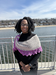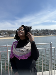 Fleurescent is a celebration of quiet beauty—the moment when buds begin to open and color spills gently into the world. The body of the shawl, with its soft pink stitches reminiscent of seeds or tiny blossoms, flows gracefully into a border of purple petals that unfurl along the crescent’s edge. Like a flower awakening at dawn, it captures that tender transition between stillness and bloom. Knitters will love watching the story unfold row by row—lace stitches growing into something delicate and radiant. It’s the kind of project that feels like poetry in yarn: meditative, romantic, and utterly satisfying to wear when you’re ready to wrap yourself in a little piece of spring.