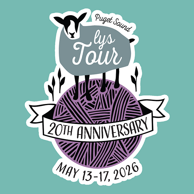 Featured knitting pattern for the 2026 Puget Sound LYS Tour for Stranded by the Sea, Edmonds, WA.