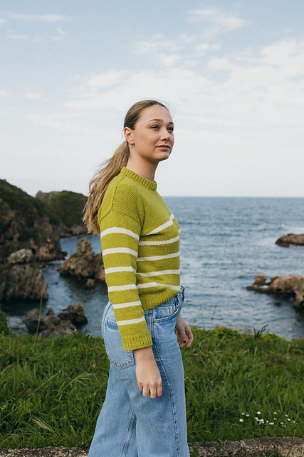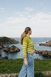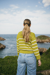 The Dennis Sweater is a timeless striped summer knit, worked seamlessly from the top down. Designed with a beautifully shaped shoulder and a relaxed, oversized silhouette, it’s an effortless piece for everyday wear.