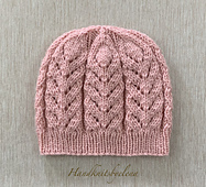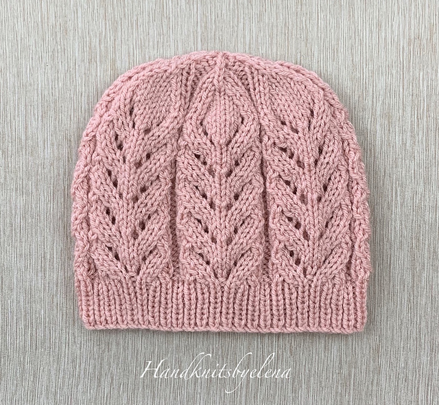 The beautiful lace "branches" on this hat are created with yarn overs, decreases, and twisted stitches. The hat is very easy and fast to knit! The pattern includes both written instructions and a chart for the stitch.