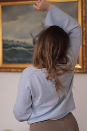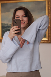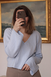 The blouse is knitted with VIP by Lana Gatto, an exceptionally soft, elastic and skin-friendly yarn. The resulting fabric is lightweight, cozy and breathable, making this piece suitable for most of the year. It is a perfect balance of comfort and understated elegance.
