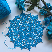 This doily is 14 rounds and measures 7 1/2". Materials needed are size 10 thread and a 1.75 mm hook. There are lots of cluster stitches throughout the doily and also a few picots on round 11 and on the final round.