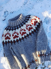 Villmarksgenseren er designet for å holde folk varme på små og store eventyr, uansett vær. Genseren er strikket i det islandske garnet Alafosslopi. Dette garnet inneholder både dekkhår og underull fra sauen som gjør at genseren blir vannavstøtende og blir svært robust. Håper du får mye glede av genseren din! God strikking
