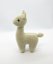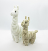 Size: Approximately 5.75” tall (not including ears) x 3.5” long using worsted weight yarn. If you choose to use other weights, the size will vary. Third photo compares the size of the Alpaca to the Llama.