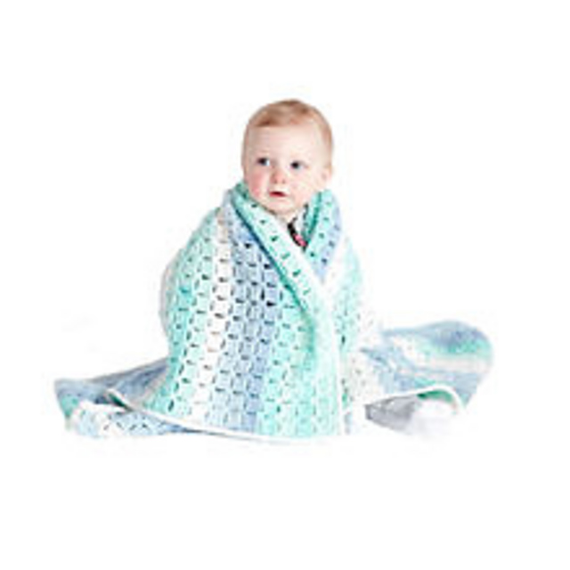 An easy and simple crochet baby blanket with a stitch repeat that creates a tiled effect. Crocheted in Caron Baby Cakes, Fresh Air.