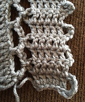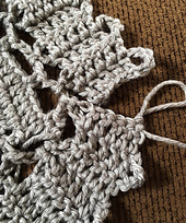 **GAUGE:** 1 pattern repeat = 4" (10 cm) in Row 3 (pattern repeat consists of one single crochet, one shell, next single crochet, and 5 double crochet); 6 rows = 4" (10 cm).