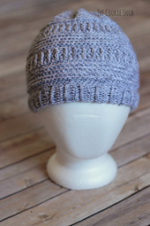 The pattern is designed to fit a small woman's head, but can be easily adapted for larger sizes (suggestions are given in the pattern itself). The pattern calls for light weight (3) yarn (I used less than a skein of Baby Bee Sweet Delight) and a size I (5.5mm) and J (6.0mm) crochet hook. You will also need a tapestry needle and I would recommend using stitch markers, but they aren't required.