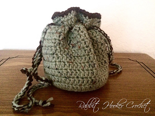A small drawstring pouch that is approximately 5" tall with a base diameter of 3.5". It is the perfect size for jewelry, trinkets, travel-sized toiletries, or a little purse!