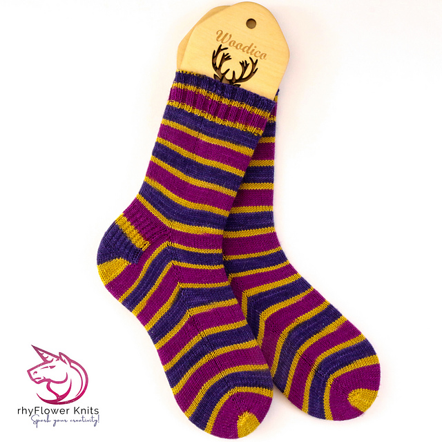 I designed the sock pattern for the magic loop knitting method in mind. However, you can also work on double-pointed needles or mini-circulars instead if you prefer (just use extra markers to denote the placement of the heel or toe shaping).