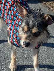 The Well Dressed Dog Coat is ready to perk up your pet with gorgeous colors - in 4 sizes! It's got a bit of stretch, so pick the size closest to the chest measurement of your dog, going with the larger size if it's a draw.