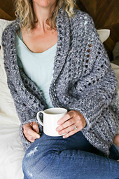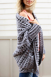 Creatively constructed from a simple rectangle, this flattering sweater comes together easily with zero shaping, increasing or decreasing. If you love the concepts of slow fashion, slow weekends at home and fast crochet projects, this chunky cardigan is just the project for you! Once you have the basic repeat memorized, you’ll whiz through this pattern and have fun watching your new sweater take form right before your eyes.