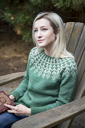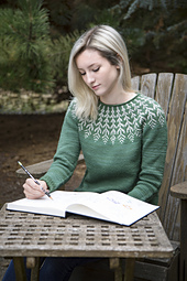 *Drawing on the beautiful simplicity of nature, this Icelandic style pullover is worked seamlessly from the top down, starting with a simple rolled neckline.* Using heavy worsted weight yarn, this sweater works up quickly. The yoke is knit in stranded color work, then short row shaping is added to the back of the sweater to shape the shoulders and neckline. Optional, gentle waist shaping is included.