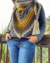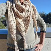 The PDF pattern includes instructions for my One "Mandala" Cake Triangle Scarf (https://www.ravelry.com/patterns/library/one-mandala-cake-triangle-scarf).