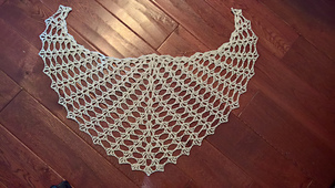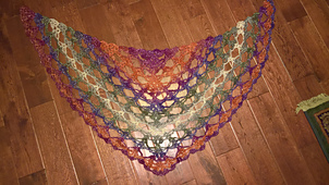 Working up quickly into a beautiful lightweight shawl, this is the second--and likely final--mod of my Movie Night Shawl. It has the same stacked shells design but this time with a top-down construction. I honestly couldn't decide whether it was more of a triangle shape or more of a crescent shape because it was a bit of both. Sadly, we don't seem to have a word for that.