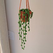 Crochet you very own hanging String of Pearls (Senecio Rowleyanus) succulent plant. Brighten up a drab corner of your room or office, or make a quick, easy housewarming gift for a friend. If you like, you can create a clustered arrangement by combining the String of Pearls with other crocheted plant patterns such as my Hen & Chicks pattern. The finished length seen here is 18 inches/46 cm, but you can crochet the vines any length and quantity you desire.