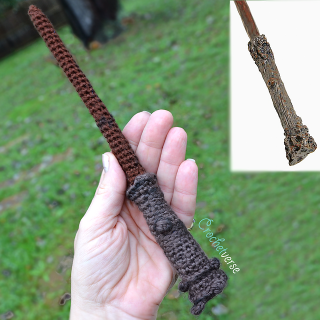 A F hook and intermediate skills are required. To create the "wood" look and the "craginess" some of the rounds are created somewhat not conventionally. I have explained in detail what to do, so please just pay close attention and you will have your own wand in no time!