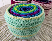 Pattern uses about 30 grams of Worsted weight yarn with a 5.0 mm hook to produce a cozy to fit a 100 gram cake. Instructions are included to make a cozy for any sized cake or ball using any hook and yarn you choose. All you need is a ruler. You can replace my use of HDC in the 3rd loop with any stitch you'd like.