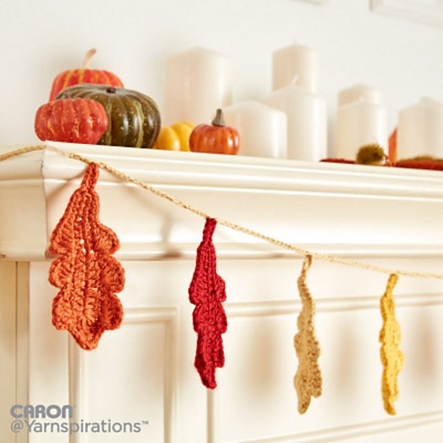 If you're someone who updates her décor with the changing seasons, how about an autumn inspired piece? This lovely oak leaf garland created with Caron Simply Soft, lets you accent anything from a mantle to a table. Make this quick project in Pumpkin, Gold, Autumn Maize and Autumn Red to welcome fall.