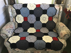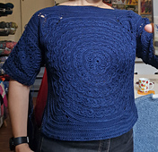 Inspired by the mystical geometry of the ancient Mayan people, this intricate blanket is an exploration of the Yucatan peninsula through crochet. The radiating lines of the central hexagon reflect the pyramids at Chichen Itza, while the surrounding shapes are reminiscent of the Mayan calendar. Enclosing it all are the rippling forms of the subtropical forest and the clear blue skies.