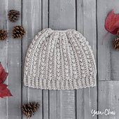 So, my first messy bun hat pattern is here! If you’ve already made a Malia Beanie or Malia Slouch, this will be super simple for you. If you haven’t, I recommend you watch the video tutorial for those hats to get you started. The tutorial shows you step by step how to make the beanie (adult large size) but all we’re doing to convert it to a messy bun beanie is skipping straight to Round 3 and working it around a hair elastic. Everything else is the same!