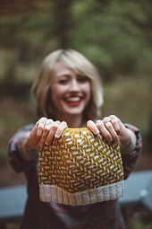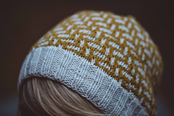 **Techniques to Indulge In:** Mosaic knitting, working in the round, ribbing, Twisted German Cast On, decreasing.