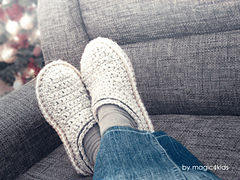 This pattern is written in English, American terminology with STEP-BY-STEP INSTRUCTIONS, VERY DETAILED PHOTO-TUTORIAL AND MATERIALS LIST for making these wonderful slippers with rope soles that your men will love.