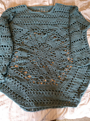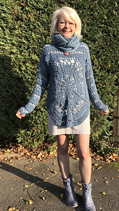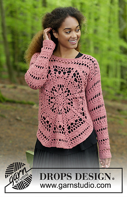 **Crocheted sweater with octagon and lace pattern. Sizes S - XXXL. The piece is worked in DROPS Puna or DROPS Sky.**