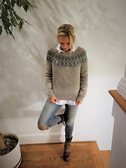 Humulus is worked seamlessly from the top down. First some Short Rows are worked back and forth to create a higher back neck and then the round- yoke is worked top down to sleeve separation. Some last short-rows are worked to finish the yoke shaping right before