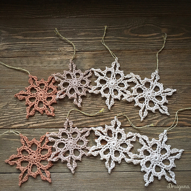 These versatile snowflakes can be used to decorate your Christmas tree, or hang them up around your house :D You can tie them onto a package or present, or include one in a card. This is also a good way to use up some left over bits of thread if you have any! Just a small amount is needed to make each snowflake.